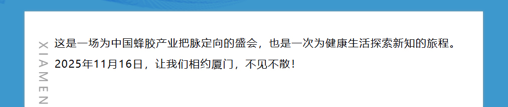 思健生物科技誠(chéng)邀您共赴廈門(mén)出席第九屆中國(guó)(廈門(mén))蜂膠高峰論壇:與蜂業(yè)權(quán)威面對(duì)面,洞見(jiàn)蜂膠國(guó)際新未來(lái)